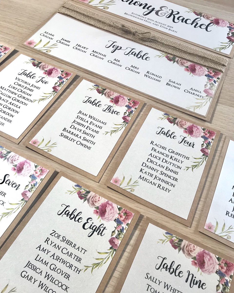 Handmadebyhannah On Twitter Floral Table Plan Cards Mounted Onto