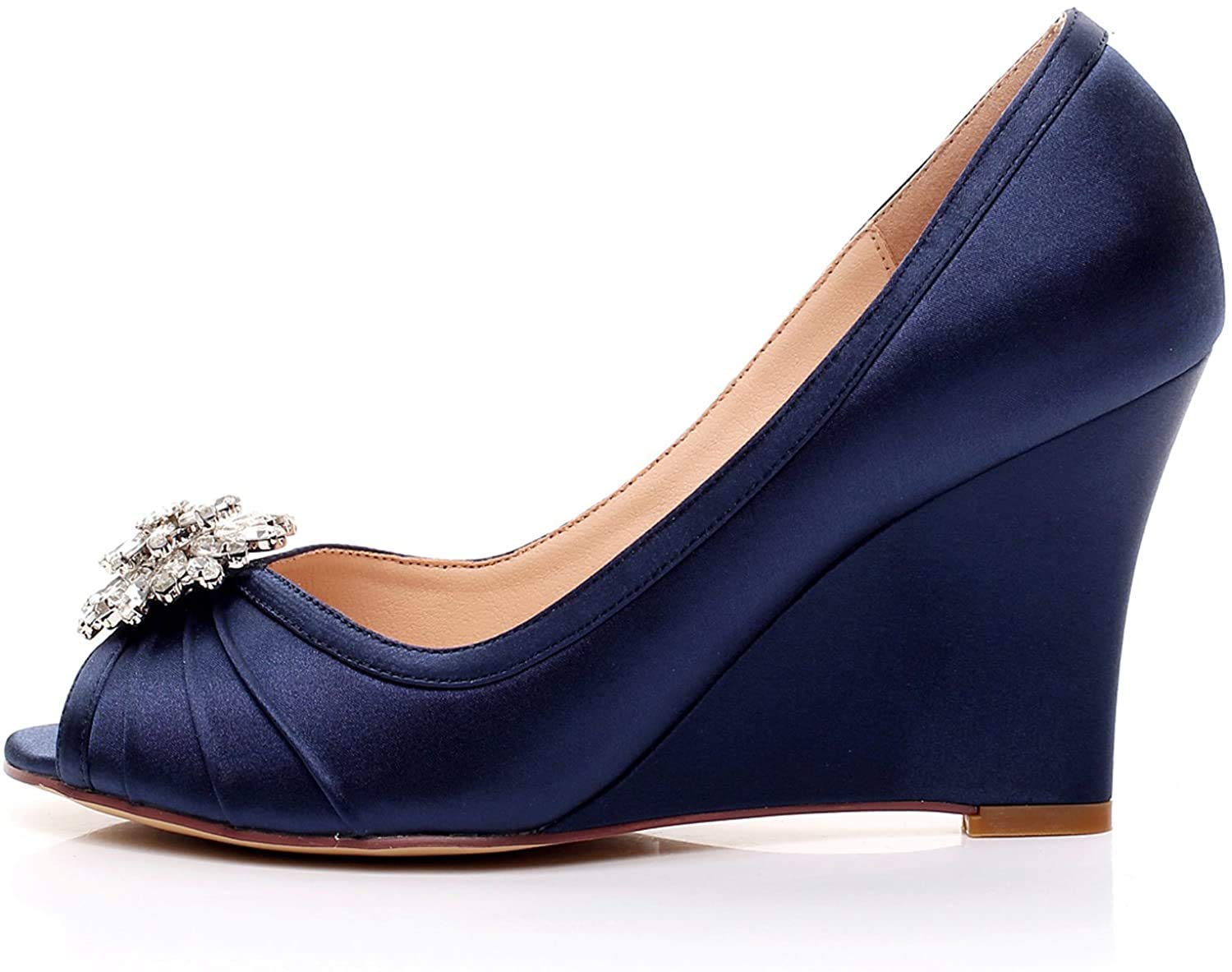 Yooziri Dark Blue Wedding Shoes Wedges With Silver Rhinestone