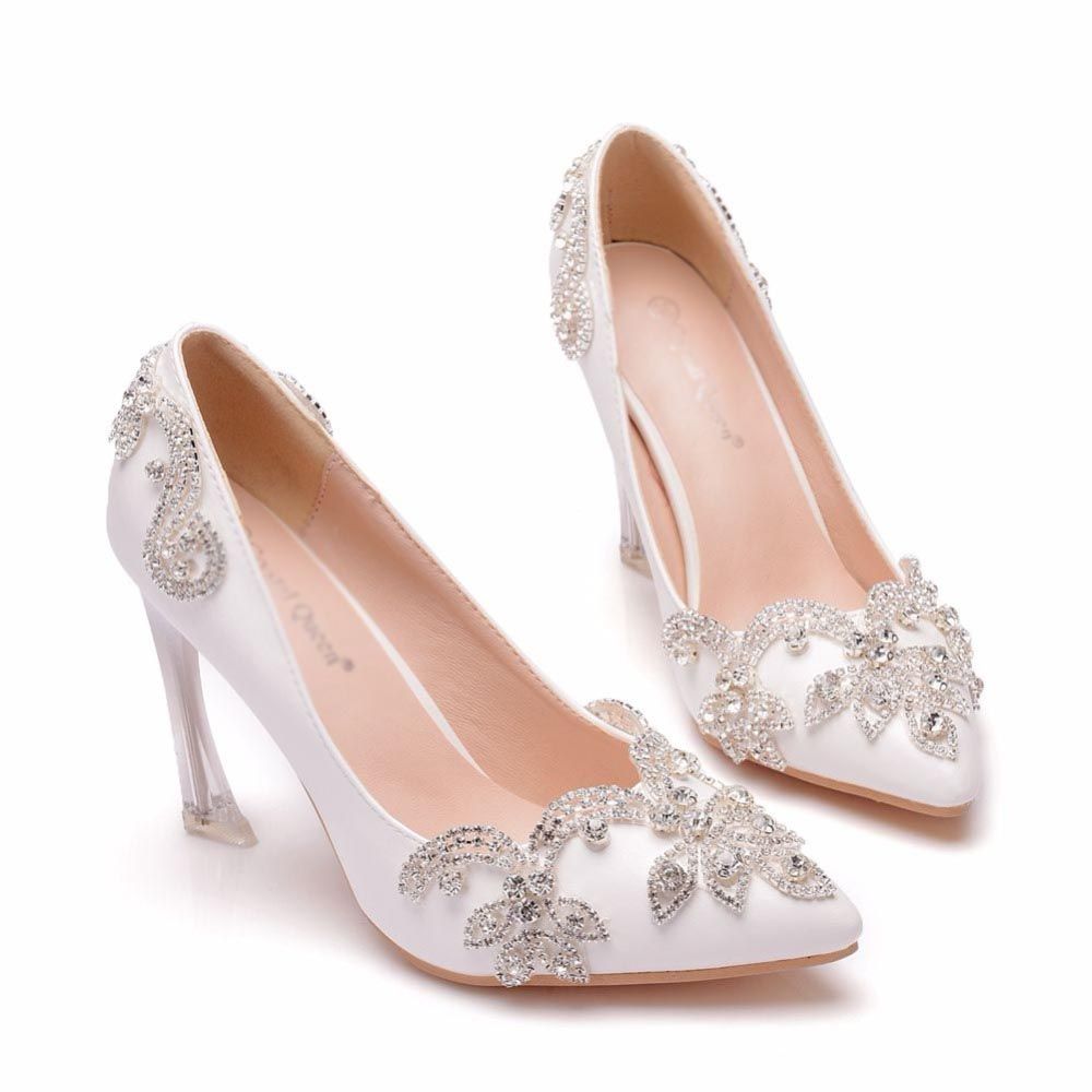 2019 Crystal Heels Pointed Toe High Heels Pumps Rhinestone Bridal