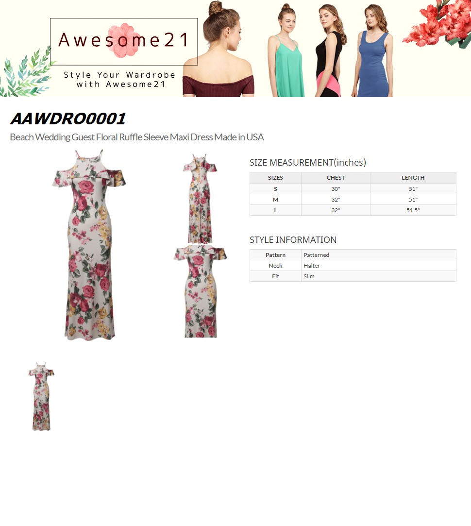 Beach Wedding Guest Floral Ruffle Sleeve Maxi Dress Made In Usa