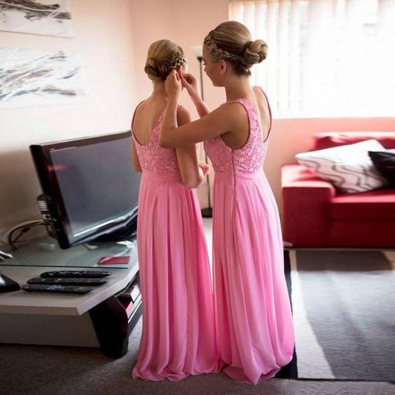 Hot Sale Applique Lace Pink Bridesmaid Dresses Long Evening Gowns