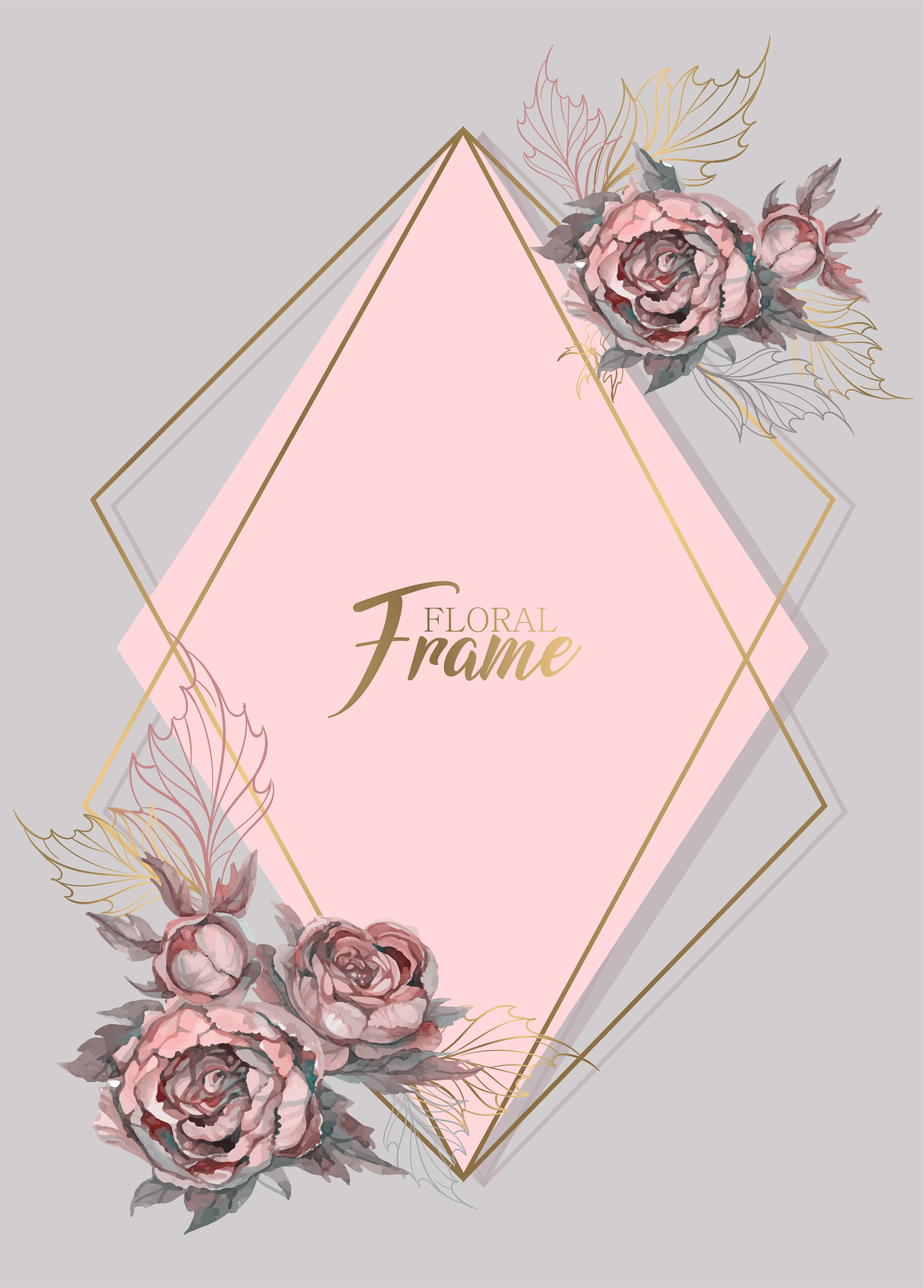 Geometric Frame Wedding Invitation With Watercolor Flowers